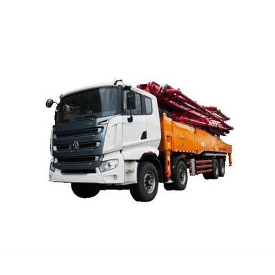 Sany SYG5418THB 56HP truck-mounted concrete pump has 56m vertical reach with the height limit programmed to prevent boom contact with an obstruction or overhead hazard. The 56m concrete pump provides the users reliable pumping performance along with the highly wear resistant parts including delivery pipe, discharge port, transition bushing, concrete piston, wear plate, cutting ring and delivery cylinder that improve the pumping efficiency and reduce down time.