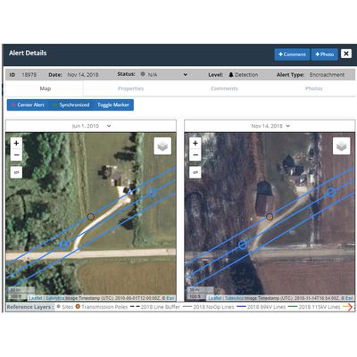 Clearly see new structures, equipment, construction, roads, waterbodies, and other issues encroaching on the transmission corridor. Direct immediate action from your field team.