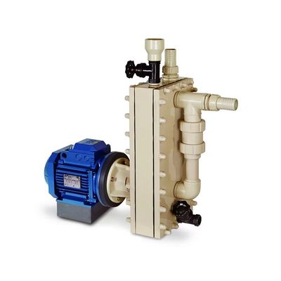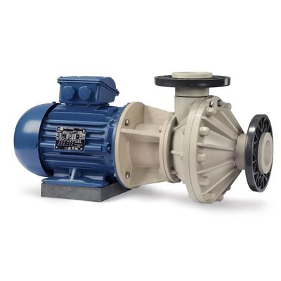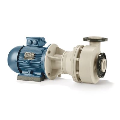 OA Series horizontal pumps. With anti-clogging impellers and large internal spaces, they can pump even very dirty industrial liquids (containing solid fibres and other coarse impurities). Max flow rate 32 m³/h. Max head 20 m w.c. Plastic construction materials: PP, PVC, PVDF. Corrosion-resistant plastic pumps. With mechanical seal and non-clogging impellers, ideal for pumping aggressive liquids or even very dirty industrial fluids (coarse solids, fibres, filaments, etc.).