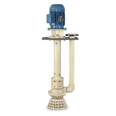 AS Series vertical pumps. Without standard lengths, they can be adapted to suit any tank with a maximum depth of 3 metres. Equipped only with a pair of bushings flushed by the liquid being pumped. Max flow rate: 90 m³/h. Max head: 55 m w.c. Plastic construction materials: PP, PVC, PVDF.