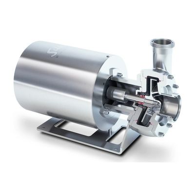 Quiet, gentle and efficient product pumping thanks to optimised fluid-dynamics design of volute-casing and impeller geometry. The dead space-free design allows hygienic operation and fast pump cleaning.