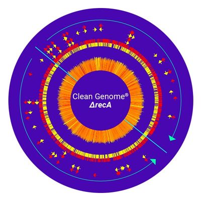 Clean Genome® ΔrecA® is an enhanced strain that is recombination deficient, suitable for production of nucleic acids with structures that may be unstable in recA+ E. coli, such as direct repeats, inverted repeats, stem-loops, etc.