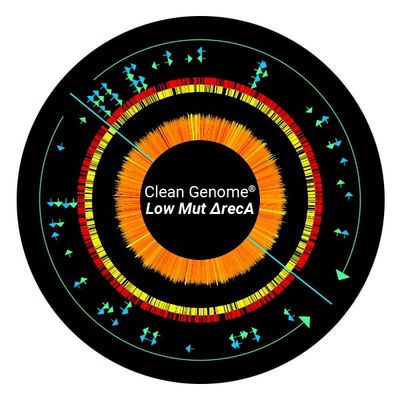 Clean Genome® LowMut reduces the already low mutation rate of Clean Genome® strains. It has been engineered to reduce error-prone repair, thereby reducing the mutation rate to almost zero, even under the most stressful conditions.