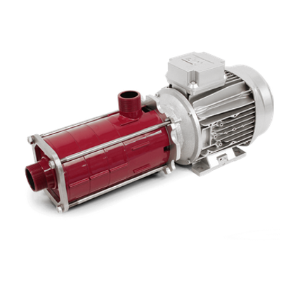 Multistage high pressure centrifugal pumps type ZHB are horizontally mounted pumps. They are characterized by a minimum space requirement. Optionally, this series can be equipped with two or three pressure outlets. The use of just one motor with multiple pressure outlets for different duty points results in minimal space requirements compared to the use of multiple pumps. Chemically neutral as well as aggressive media, e.g. alkaline solutions, acids, solvents and lubricants can be pumped easily.