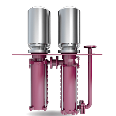 Multistage immersion pumps type DUO are characterized by a robust and durable design and can be used in a wide variety of applications. They are ideal for pumping clean media or media with slight solids loading such as lubricants, alkaline solutions and solvents used in washing, cleaning, degreasing, pickling and phosphating. The pump series DUO can be operated with variable speed drives. Optionally, this series can be equipped with two or three pressure outlets. The use of just one motor with multiple pressure outlets for different duty points results in minimal space requirements.