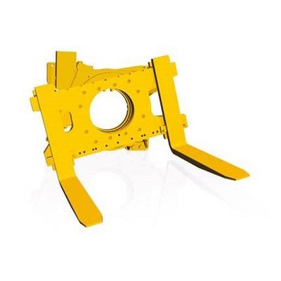 Fork positioners enable hydraulic positioning of forks. These attachments are used in particular for frequently changing load widths. Due to the sturdy frame construction, the heavy-duty version is even suited for the toughest applications. A great deal of spreading stress can be absorbed due to the double-shaft guide and the bolt-on forks. When handling round goods, we recommend chamfering the inner and outer edges of the forks in order to avoid damage to the goods. For the emptying of boxes, the attachment is available as a rotatable version.