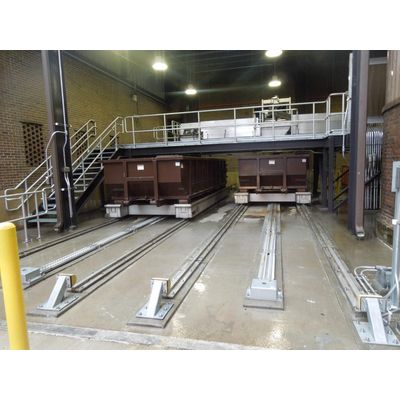 Schwing Bioset offers both Container Wagons and the Augie Dumpster system for your disposal needs. Both systems offer low maintenance and cost-effective ways to evenly and automatically load dumpsters. The Container Wagon system is a rail-mounted unitized carrier that, utilizing level and proximity sensors, will automatically index itself through the loading sequence such that the dumpster is evenly loaded. The rail system will then deliver the dumpster to the dedicated loading/unloading station for removal.