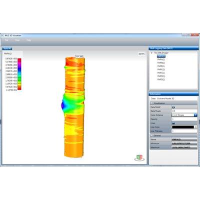 WLD 3D Visualizer (Well Logging Data 3D Visualizer) is a simple application for visualizing well logging data as 3-dimensional images. The 3D representation allows truly imaging of some borehole parameters. The program allows 3D visualization of curves and 2D channels. All curves (1D channels) are visualized as cylindrical surfaces along the depth axis. The radius of the cylinder on each depth reflects the curve value measured on this depth. The 2-dimensional channels (having an array of values on each depth) are visualized as 3D surfaces along the depth axis.