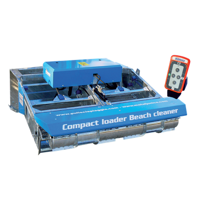The new Compact loader Beach cleaning machines is a front-mounted beach cleaning machine, it can be used by mini loaders such as Bobcat, Cat, Caterpillar, JCB, Doosan, Mustang, Comatsu, Giant, New Holland, Comatsu, Avant, Multione, and many others.
