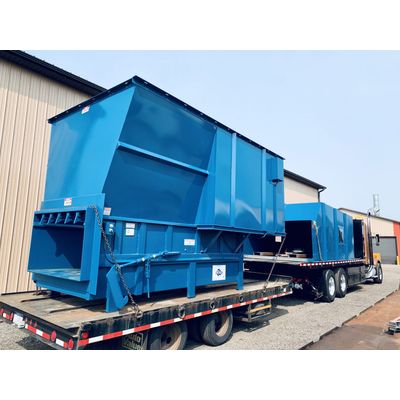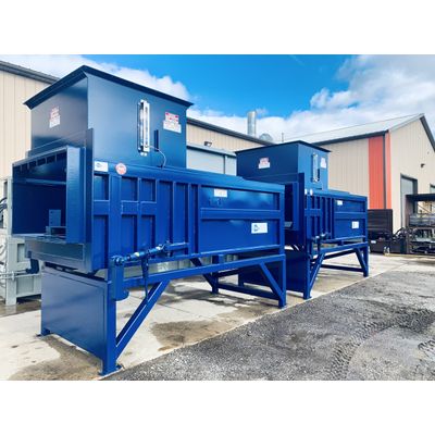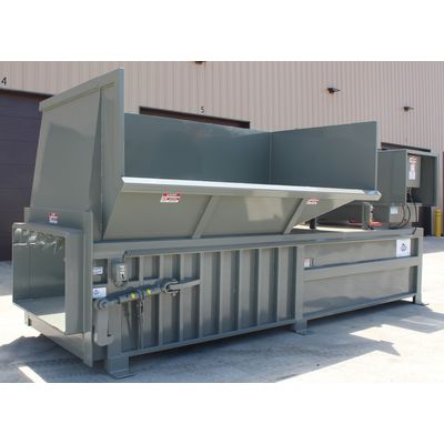 These 6 and 7 cubic yard machines with 98” x 60” chamber openings are often utilized in an open area outside with a right or left hand loading open hopper, ideal for loading with a lift truck. Because of the large chamber size, a dumper can increase efficiency and help reduce workers comp liability. This model is available with 56,550, 76,960, or 113,100 lbs of force.