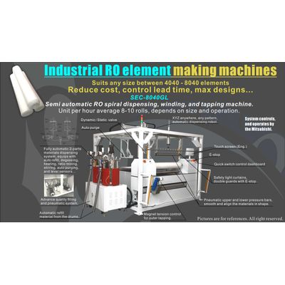 Model SEC8040 - 4-8 inch industrial RO cartridge element dispensing and spiral winding machine
