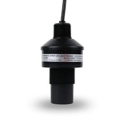 ToughSonic® 200, 20` Range, 1" NPT Upper & 1.5" BSP Lower Threads, RS-485. Product code: TS-200.20H1X.007FA. Minimum Purchase: 1 unit. Bulk Pricing. Buy in bulk and save. Max Measuring Distance: 20 feet (6.1 m). Optimum Measuring Distance: 13 ft. (4 m). Deadband: < 8 in. (20.3 cm). Temperature Range: -40° to 158° F (-40° to 70° C). Protection: NEMA 4X, IP 68, NEMA 6P. Area Classification: Ordinary Locations. Cable Length: 6.5 feet. Mount: 1" NPT Thread Upper, 1.5" BSP Thread Lower. Dimensions (L x Dia): 5.62 [143mm] x 3.05 [77mm]. Housing: PVDF. Legacy Part Number: LVL-300-485. Output: Buy RS-485 Online, RS-232 Available.