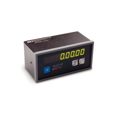 This versatile 7-digit display reads out in degrees/minutes/seconds (DMS) or decimal degrees. Resolutions up to 0.001 degree are selectable from the front panel. The SA100(R) accepts a 5VDC standard differential quadrature signal from either linear or rotary incremental encoders. Incremental and absolute operating modes are available. The SA100(R) also features an auxiliary reference input, allowing integration of an independent reference marker from a remote switch. The SA100(R) comes with its own 12VDC power supply which operates on 115 VAC line voltage.