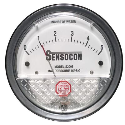 The Series S2000 differential pressure gauges are low cost, diaphragm operated, mechanical differential pressure gauges that may be used in all applications where the Dwyer Magnehelic brand gages may be used. The Sensocon Series S2000 differential pressure gauge can be used in applications for measuring positive, negative, or differential pressure with an accuracy of 2%. Standard applications include monitoring filter status, duct static pressure, room pressure, fan or blower pressure, paint booths, dust collectors, and cabinet purging along with many others.