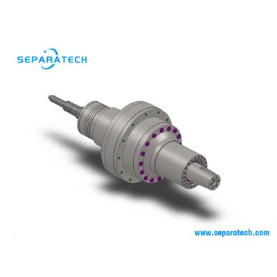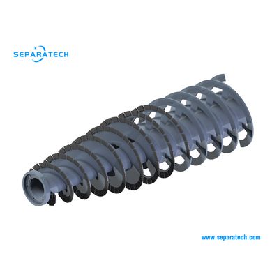 SEPARATECH provides OEM scroll conveyor of decanter centrifuge, reverse engineer and optimize all decanter centrifuges for any decanter centrifuge brand. Our experience makes all the difference for accurate and durable scroll conveyor of decanter centrifuge manufacturing. The scroll conveyor, conveyor screw, is in the form of an Archimedean screw. fitting inside the beach and bowl between the two end hubs. with a small clearance of less than 2 mm radially. It has a number of functions. Not only does it convey the solids, after they form a cake. along the cylindrical bowl section and up the beach, it also accepts the feed and accelerates it up to bowl speed.