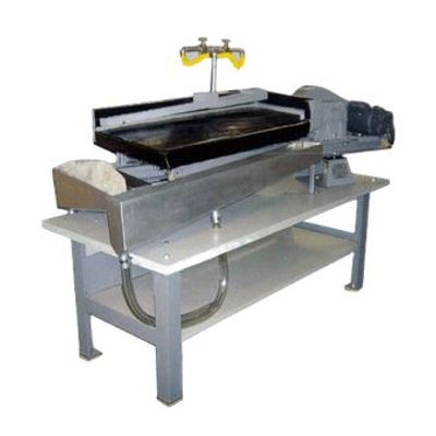 The Model 15-S Table is a miniaturized version of the full-sized No. 6 Concentrating Table. It incorporates all of the features of this commercial size table, including anti-friction bearing head motion, deck support on a separate steel sub frame and main channel base, plus a vari-speed drive. The end elevation adjustment can be quickly and easily adjusted, since this adjustment is one of the most important adjustment on a concentrating table. The ease of making rapid adjustments is particularly useful in a laboratory situation, when a wide variety of materials and conditions may be encountered.