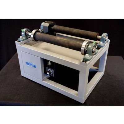 SEPOR’s bench or floor type jar mill drives are used for turning laboratory size jar mills used for wet or dry grinding, blending, dispersing, and other conditioning. The SEPOR series of drive rolls are rugged in design, use 2″ diameter neoprene rollers (60 Dura) with a jar stop to prevent jars from over running the roll. When the jar drives reach 48” in length, the roll diameter is increased to 2.5”. AC electric input is converted to DC for speed control in a 20 to 320 RPM range. The distance between rolls is also variable. A wide variety of jar sizes can be used. All units are operable on 50 or 60 Hz.110 V/1 Ph/60 Hz or 220 V/1 Ph/50 Hz.