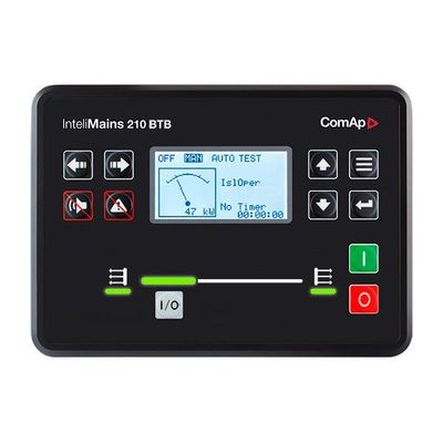 Highly customizable behavior of breaker control (dead bus, blockation of closing etc.). Synchronization (phase matching/slip synchro) of two control groups separated by InteliMains210- BTB with various settings (which group synchronizes to which etc.). Load shedding control (based on power transferred via BTB). PLC logic included (useful in complex systems – BTB can for example serve as auxiliary PLC for other controllers). Full set of protections for BusL and additional protections for BusR. Group Link function.