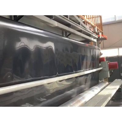 HDPE geomembrane’s full name “high density polyethylene geomembrane”,is manufactured by blown film extruders,with the 100%virgin resin and carbon black,no additive. Hdpe geomembrane thickness range:0.3-3mm(12mil-120mil), and 0.5mm/20mil, 0.75mm/30mil , 1mm/40mil, 1.5mm/60mil, 2mm/80mil thickness are popular. Roll width:1m-8m, normally 5.8m 6m 7m 8m,customized width Geomembrane Surface: smooth surface, textured surface.