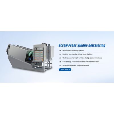 Screw press sludge dewatering/ thickening/ thickener also called Multi-Disc Screw Press , it`s clog-free and can reduce the sedimentation tank and sludge thickening tank, saving the cost of sewage plant construction. Minimized waste water and saving the cost of transport.