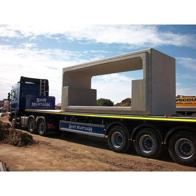 A Precast Concrete Box Culvert, an easily-installed conduit used to enclose small roads, pathways or flowing water (e.g. streams, stormwater or drains) passing beneath roads, railways or embankments. Shay Murtagh Precast is one of the largest producers of precast concrete box culverts in the UK and Ireland. With our modern and mechanised box culvert production facilities, we can produce over 60 metres of culvert section per day. We manufacture a range of standard stock size box culverts but most units we design and manufacture to meet individual project specifications. This allows us complete flexibility and enables us to manufacture culverts that can accommodate any situation.
