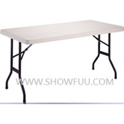 Blow Moulded Folding Table. Plastic Material: HDPE. Prod. Dim.: 152 x 76 x 74.5 H/cm. Ctn. Dim.: 154.5 x 78 x 7 H/cm. Packing: 3.0` / 1 Pce / 1 Ctn. N. W. / G. W.: 14.00 / 15.20 Kgs. 40 FT: 700 pcs.