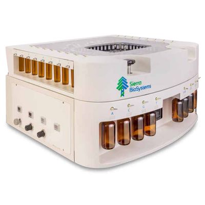 6 columns. 10 amidite positions (3 shared). 8 reagent positions (2 shared). Universal or standard CPG. Variable synthesis scale up to 10 µmol. Online trityl monitor for all columns (all trityl collected). Free programmable synthesis control. New synthesis start on every position while synthesis running. Single-spaced column version. Wobbles over mixing chamber (mixed bases capability). Mixing chamber available (shared). Automated antisense oligo synthesis (also internal). Cycle time 2 ½ – 3 ½ minutes for 6 column synthesis. Low reagent consumption. Designed especially for long, highest purity oligos. Very compact design leaving you more benchtop space. Dimensions (WxHxD): 25 x 40 x 40 cm.