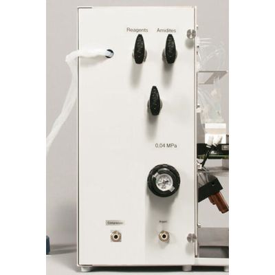 Low cost DNA/RNA/LNA Synthesizer. 2 columns. 8 amidite positions (2 shared). 8 reagent positions (2 shared). Universal or standard CPG. Variable synthesis scale up to 40 µmol. Online trityl monitor for all columns (all trityl collected). Free programmable synthesis control. New synthesis start on every position while synthesis running. Double-spaced column version available. Wobbles possible. No mixing chamber. Automated antisense oligo synthesis (also internal). Cycle time 2 – 2 ½ minutes for 2 column synthesis. Low reagent consumption. Designed especially for long, highest purity oligos. Very compact design leaving you more benchtop space. Dimensions (WxHxD): 25 x 40 x 40 cm.