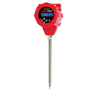 The QuadraTherm 640i is the most accurate insertion-probe thermal mass flow meter for air / gas mass flow rate measurement on the market today, achieving gas mass flow rate accuracy never before possible, +/- 0.75% of reading above 50% of full scale. The QuadraTherm 640i air / gas mass flow meter marks an accuracy breakthrough in thermal dispersion technology achieving extreme precision with "percent of reading" accuracy, which for the first time rivals accuracies of Coriolis technology for measuring mass air flow rate and other gases.