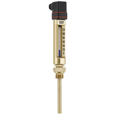 The SIKA KombiTemp® consists of a SIKA industrial glass thermometer and an electrical temperature sensor according to customer requirements in the same casing and immersion tube of the industrial thermometer.