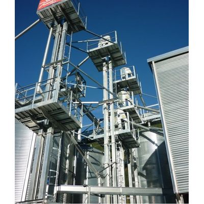 The bucket elevators are used for vertical transport of cereals,grain, flour products. The entire series EL is realized with dip galvanizing steel,that made this series suitable for outdoor uses. Also legs can be supplied on dip galvavanized steel or SENDZIMIR galvanizartion. Buckets are made of iron or PVC with high efficiency form while belts are made of rubber, with mediately anti-oil and anti-static coating. Drive is made, on standard execution, by motor, anti-return reduction gear, belt drive; if required drive can be direct assembled on shaft.