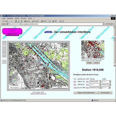 eHIS InterStore is the e-commerce plattform for selling and presenting your data in the internet and intranet. You input the data values - eHIS InterStore creates a database with all necessary information for your customers. The customer chooses the measurement points in a map and looks at preview pictures, using his web browser. He orders the needed data as pictures, tables or defined evaluations. After checking the credit card information, the customer receives his data files automatically - and you get the money. eHIS InterStore is as well very useful for presenting and distributing data in an intranet.