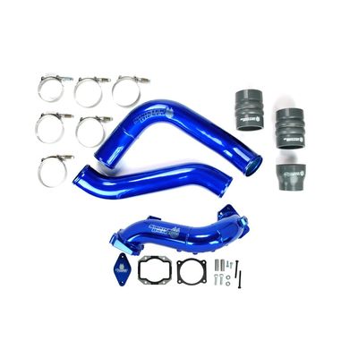 The Sinister Diesel LML Intake Bridge replaces the restrictive stock piping on your 2011-2016 GM 6.6L Duramax Diesel with Larger Diameter CNC mandrel bent aluminum tubing that optimizes airflow after the throttle valve and heater. The increased diameter of the air path and large bends help decrease restriction within the intake for a noticable increase in performance and turbo spool. Finished within eye-catching Sinister`s high-gloss blue powder coat, the Sinister Diesel LML Duramax cold air intake bridge provides an upgrade over the stock cast aluminum