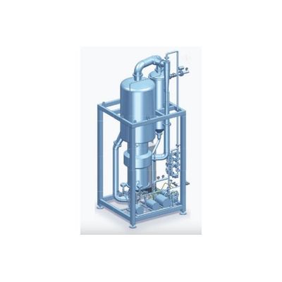 With falling film evaporating plants we thicken milk, whey, fruit juices and many other media in the food processing, pharmaceutical and chemical industries (acids, suspensions, emulsions). These plants are usually equipped with a steam ejector in one of the steps to achieve higher plant economy by reducing steam consumption during the evaporation process.