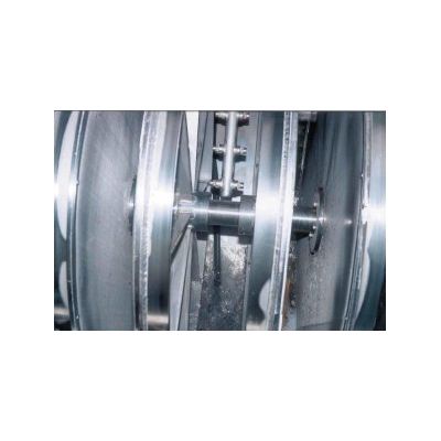 This type of screen is utilised for very fine screening following the coarse screen in stream- or sea-water intake structures. It relies on the principle of collecting screenings on sieve modules mounted on a chain and then expelling them through back-washing with pressurised water. In general, the conveyor screen consists of a frame, a chain, sealing plates, washing system, and discharge and screen panels. The sieves are mounted on screen panels. Pressurised water blown out of nozzles located on the inner side of the panel guides the screenings accumulated on the panel sieve into the channel and leads them to the discharge point.