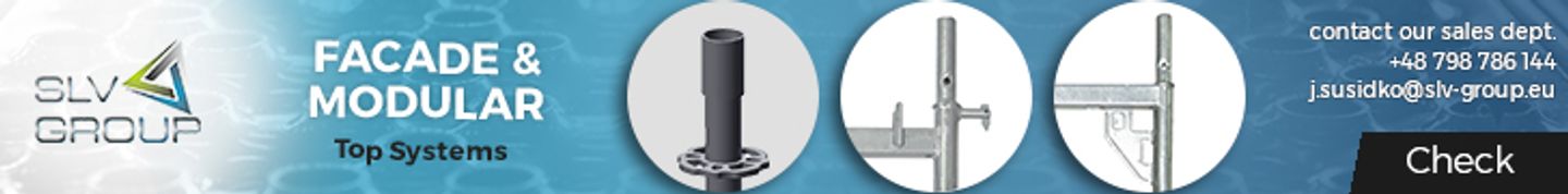 We specialize in the production of modern modular scaffolding systems (slv-m) and facade scaffolding (facade) also called frame scaffolding (SLV-73 and SLV-70). The scaffoldings we offer are designed and made by qualified staff using modern technology. Our production plant with the most modern, fully automated production line is located in Sulnowo near Świecie. From there, the scaffoldings are transported to the company`s headquarters - to Carpenter near Oleśnica. Here they are stored in warehouses with an area of approximately 9.000m2. The large surface allows us to quickly process orders (even in 24h) and simultaneously load up to 8 trucks.