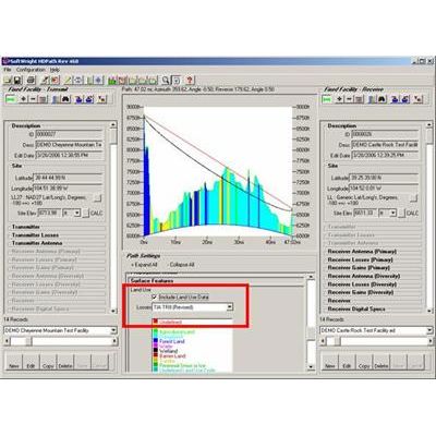 The Land Use module imports USGS National Land Cover Database (NLCD) files and Global Land Cover (GLC) files and uses them in the radio coverage predictions and link analyses. Loss values may be defined for any frequency ranges for each specified type of land use to permit the inclusion of localized environmental conditions in predicted system performance. Recommended loss values are readily available. The USGS NLCD files categorize land use attributes, such as Urban, Agricultural, Forest, etc. When the files are imported into the TAP format, TAPcan determine the classification at a given set of coordinates.