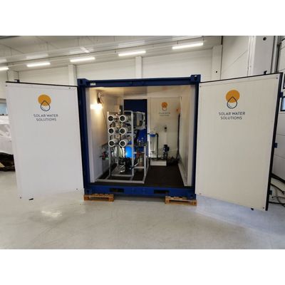 The SolarRO SW 18 is a compact seawater reverse osmosis (RO) desalination system from Solar Water Solutions, designed for off-grid and remote locations using solar power