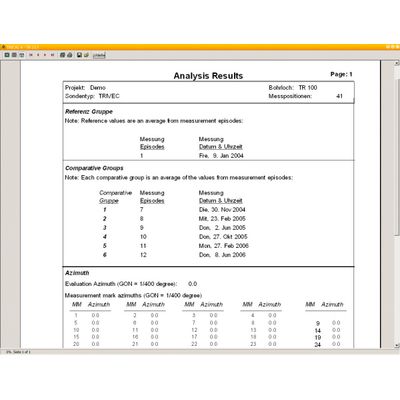 The Trical software is used for processing and evaluating measured values and measurement results of the Sliding Micrometer, Sliding Deformeter, Trivec and Borehole Inlinometer. The measured values are usually transferred from the field computer to the office PC or entered manually and then evaluated. The evaluation includes graphical and numerical representations of the displacement profiles in the vertical Z-direction or in the borehole direction and in the two horizontal directions X and Y. The measuring tube rotation is also evaluated. The measuring tube rotation and the measuring tube orientation are taken into account by coordinate transformation. The measurement results can be output in different languages and, for use in other programmes, also as result files.