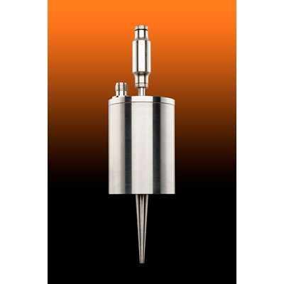 Sonaer`s precision spray atomizer nozzles focus micron and sub-micron droplets onto small parts from various viscosity solutions with very little overspray. Nozzles come in two styles, flat and wide spray tip. Nozzles are ideal for focusing droplets with our Pin Point Spray Shapers and for extra low solution deliveries. Controlled coatings are obtained from these nozzles making it easy to adapt to many applications requiring thin uniform films. The nozzles are lightweight making them attractive with robotic coating systems. Nozzles are available in lightweight black aluminum (special order) or stainless steel case with stainless steel inner feed tube. Micro feed tubes are available for delivering micro liter volumes, available in stainless steel and PTFE fluoropolymer. Nozzles can be configured with spray shapers for pin point sprays and wide sprays giving the user more control over the coating application.