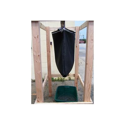 Hanging bags are approximately 3 feet x 3 feet or 1 meter x 1 meter with the sides and bottom sewn shut leaving the top open. The purpose of the hanging bag is for testing the de-watering performance of the bag by suspending it 3-5 feet from the ground and pouring the sludge slurry into the opening in the top of the bag. This process allows the Customer to match up the type and amount of pre treatment (if any) required as well as optimum material of composition for the bag.