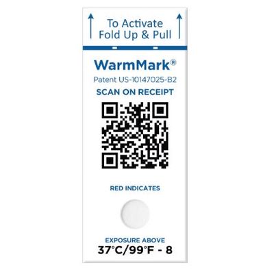 WarmMark - Model WM 37/99-SQ - QR 37C/99F 8 Hour Single-Window Temperature Indicator