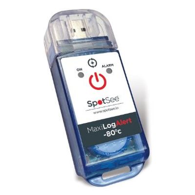 The MaxiLog Alert -80°C offers the best-in-calls dry ice monitor, in a compact palm-sized design, seamlessly integrating durable temperature monitoring with easy data retrieval through a built-in USB interface for direct download to software. They are equipped with customizable features including start time delay, sampling intervals, high and low alarm values, alarm types, and measurement data, ensuring comprehensive adaptability to diverse monitoring needs. Temp Range: -80°C to +30°C / -113°F to +86°F