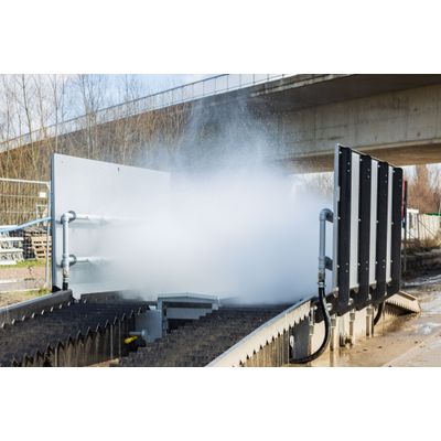 Spraystream wheel cleaning systems. Wheel washing installations for trucks are essential in industries where large trucks and heavy equipment regularly traverse on paved surfaces or off-road terrains, which can result in dirt, debris, and other contaminants building up on the wheels. These contaminants can be harmful to the environment, and can also lead to safety hazards for other vehicles on the road. Thorough, periodic cleaning is therefore much needed but time-consuming. Spraystream`s automatic wheel washing systems offer a quick and complete solution. Spraystream presents a wheel wash system that can be easily and completely installed above ground. Several components can, therefore, very easily be placed next to each other to obtain multiple wheel rotations of the truck (in case of heavy soilage, for example).