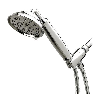 The Sprite Bella Pure Filtered Hand-Held Shower Handle incorporates an advanced Chlorgon filtration system that effectively removes free chlorine, dirt, and odors from water. This unit offers seven Pure-Spray® settings with anti-scaling spray tips, ensuring a customizable and maintenance-free shower experience. Designed to complement antique fixtures, the shower handle features an elegant neck and head, a double-coil metal hose, and a European-style bracket. It includes a replaceable HHC filter cartridge rated for 3 months or 5,000 gallons, ensuring sustained filtration performance. Certified to NSF/ANSI Standard No.177 and EPA WaterSense, it meets rigorous quality and efficiency standards. The ABS plastic housing contains Sprite’s patented filtration media for enhanced water quality, contributing to softer hair and skin. This filtered shower handle seamlessly integrates with any standard 1/2-inch NPT shower arm without requiring additional equipment. It comes with a one-year manufacturer's warranty and is specifically designed for shower filtration needs, distinguishing it from drinking water treatment units.Sprite - Model HK - Biarritz Series - Hand-Held Filtered Shower Handle