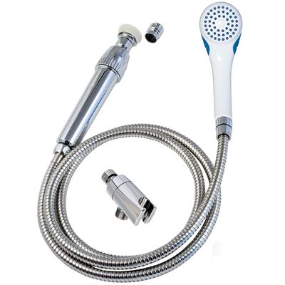 The Baby Shower attaches to kitchen faucet or shower arm. Replaceable filter cartridge (Model HHC) rated for 3 months or 5,000 gallons, which ever comes first. Easy grip shower handle with gentle single setting spray. Includes: Handle, Hose, Hose Filter with replaceable cartridge, Faucet Adaptor and Bracket. Limited one-year warranty.