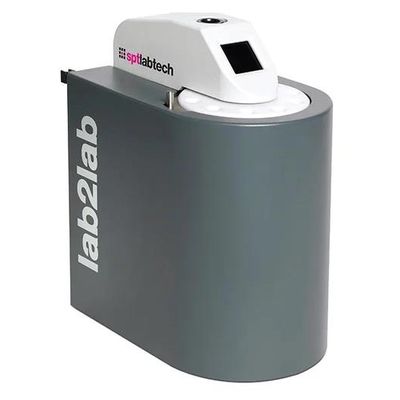Device to integrate lab2lab with third-party instruments. Various different models exist to work with Agilent, Waters and Bruker equipment. Sample vials are transported from the router to a receiver and then presented to the instrument for aspiration. After successful aspiration, sample vials are sent back to the router.