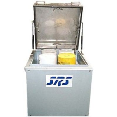 A Real SRS Customer Story: A large US paint producer came to SRS Engineering looking for a solution for removing old dried up paint from their one gallon pails and lids. The workers had the daunting task of washing approximately 4 pails/lids every 5 minutes. This task required not only a substantial amount of time, but manpower. Removing cured paint from pails requires equipment that can not only handle flammable contaminants but can also handle the workload.