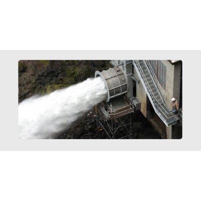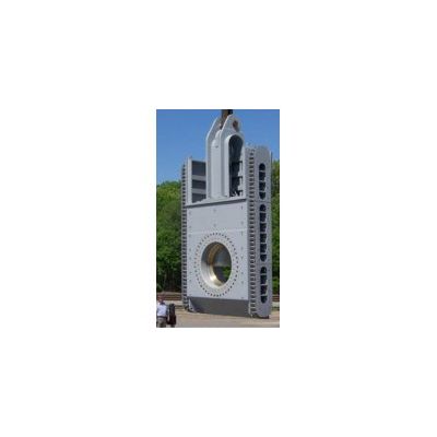 Jet-flow gates are similar to high pressure bonneted slide gates and are used as regulating gates under free or submerged discharge conditions. The combination of a circular seat ring and floating seal ring upstream of the gate leaf concentrate the discharge flow into a jet with minimal cavitation or vibration. Jet Flow Gates are typically operated with hydraulic cylinders but can also use a screw stem arrangement with an extended bonnet.
