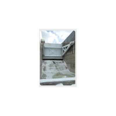 Slide Gates consist of a flat structurally reinforced gate leaf with polymer bearing surfaces and perimeter seals for operation vertically within a gate frame. Slide gates may be operated with hydraulic cylinders or a screw stem system using manual gearboxes or electric actuators.